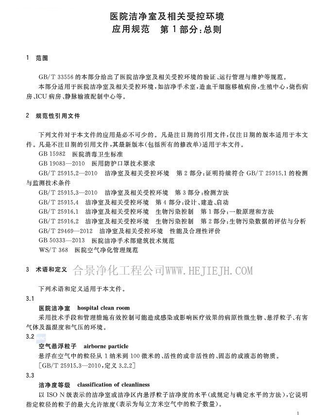醫(yī)院潔凈室及相關(guān)受控環(huán)境應用規(guī)范(GB/T33556.1-2017)全文完整版