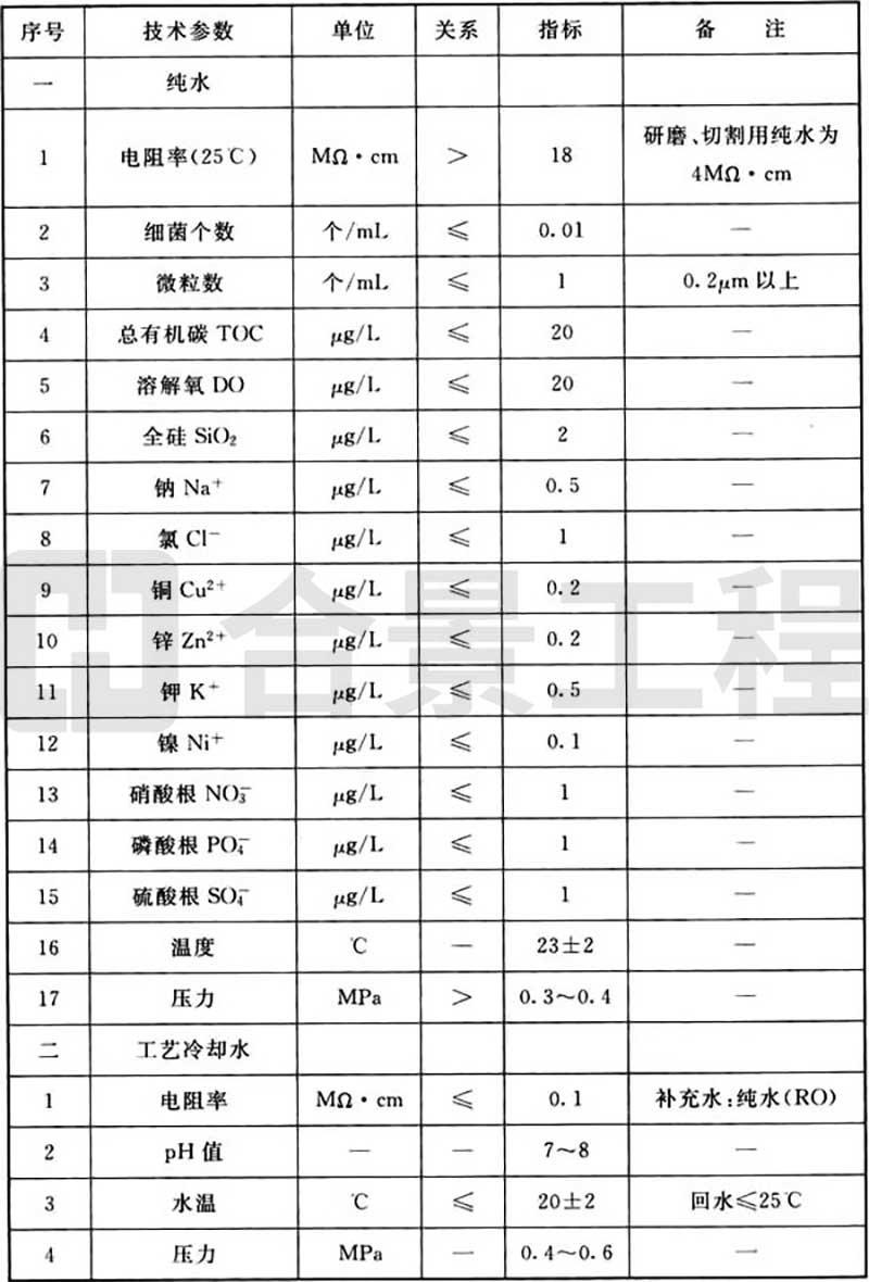 B.0.2 發光二極管生產工藝動力品質(水)要求可按表B.0.2執行。